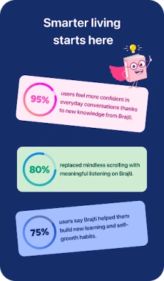 Snívate o posilnení sebadôvery, prehlbovaní sústredenia, budovaní zdravších návykov alebo posúvaní vašej kariéry vpred? Brajti je váš spoľahlivý sprievodca na ceste k neustálemu osobnému rastu. Táto inovatívna aplikácia premieňa komplexné poznatky na ľahko stráviteľné informácie, umožňujúc vám efektívne napredovať vo všetkých aspektoch vášho života. S Brajti nebudete len pasívne prijímať obsah, ale skutočne sa učiť inteligentnejšie, rásť rýchlejšie a žiť plnohodnotnejšie.