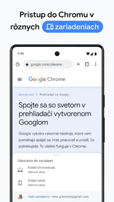 Zažite nepretržité online putovanie naprieč všetkými vašimi platformami. Jednoduchým prihlásením do Chrome sa vám synchronizujú záložky, otvorené karty a heslá, vďaka čomu môžete bez námahy pokračovať v práci či zábave na telefóne, tablete alebo počítači. Optimalizujte si prehliadanie s intuitívnymi Skupinami kariet, ktoré udržia vaše otvorené stránky perfektne usporiadané bez ohľadu na to, ktoré zariadenie práve používate. Ušetrite cenné sekundy s funkciou Automatického dopĺňania, ktorá bezpečne a rýchlo vyplní vaše uložené platobné údaje, adresy a prihlasovacie údaje, aby ste sa mohli sústrediť na to, čo je pre vás dôležité.