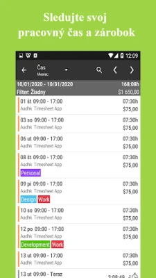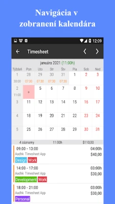 S aplikáciou Pracovný výkaz je monitorovanie pracovných aktivít jednoduchšie ako kedykoľvek predtým. Či už preferujete okamžité spúšťanie časovača, rýchle zadávanie cez widget, alebo plánovanie priamo v kalendári, máte na výber. Získajte detailný náhľad na vaše odpracované hodiny a automaticky vypočítané zárobky. Aplikácia myslí na komplexné potreby – sledujte viacero úloh a klientov súčasne, automaticky vypočítavajte denné a týždenné nadčasy a dokonca zaokrúhľujte čas na presne definované intervaly (3, 5, 6, 10, 15, 30 alebo 60 minút) pre maximálnu presnosť fakturácie.
