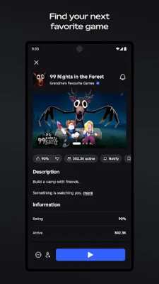 Prihláste sa s vaším existujúcim kontom a okamžite sa ponorte do srdca komunity, kde čakajú populárne zážitky ako Grow a Garden, Adopt Me!, Dress to Impress, SpongeBob Tower Defense, Brookhaven RP, How to Train Your Dragon a mnoho ďalších. Vytvorte si svojho jedinečného avatara, prispôsobte ho tisíckami kusov oblečenia, doplnkov a účesov. Vyjadrite sa prostredníctvom unikátnych animácií a emotívov. Preskúmajte a hrajte spoločne kedykoľvek a kdekoľvek; Roblox funguje bez problémov na mobilných zariadeniach, tabletoch, PC, konzolách aj VR headsetoch, čo vám umožňuje spájať sa s priateľmi naprieč všetkými platformami. V rámci aplikácie sa môžete pripojiť do Party a využívať hlasový či textový chat, pričom pre užívateľov nad 13 rokov sú dostupné širšie možnosti komunikácie.