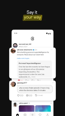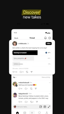 Využite bezproblémovú synergiu s Instagramom. Vaše instagramové užívateľské meno a overovací odznak sú pre vás rezervované a vďaka pár ťuknutiam môžete automaticky sledovať tie isté účty, ktoré už poznáte z Instagramu, a zároveň objavovať nové, inšpiratívne profily. Rozprúďte vlastnú diskusiu, aby ste vyjadrili, čo máte na srdci; toto je váš priestor na autentické vyjadrenie sa, pričom si zachovávate plnú kontrolu nad tým, kto môže odpovedať. Ponorte sa do živých konverzácií, reagujte na humor a postrehy od tvorcov, ktorých máte radi, a nájdite svoju komunitu, s ktorou zdieľate spoločné vášne.