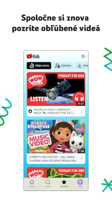 S YouTube Kids máte plnú kontrolu nad diváckym prostredím. Výkonné rodičovské funkcie vám umožňujú nielen obmedziť nevhodný obsah, ale aj aktívne formovať digitálnu cestu vašich detí. Nájdite obľúbené videá a spoločne zdieľaný obsah na šikovnej karte „Pozrieť znova", ktorá uchováva vzácne spomienky. Pre podporu zdravých návykov je k dispozícii funkcia Časovač, ktorá rodičom umožňuje nastaviť dobu sledovania a jemne upozorniť deti na potrebu prestávky. V prípade akéhokoľvek nevhodného obsahu je tu možnosť okamžitého nahlásenia, aby náš tím mohol situáciu preveriť. Pre optimálne rodinné prostredie sa odporúča rodičovské nastavenie v aplikácii, zatiaľ čo Google zabezpečuje súkromie a bezpečnosť všetkých užívateľov.